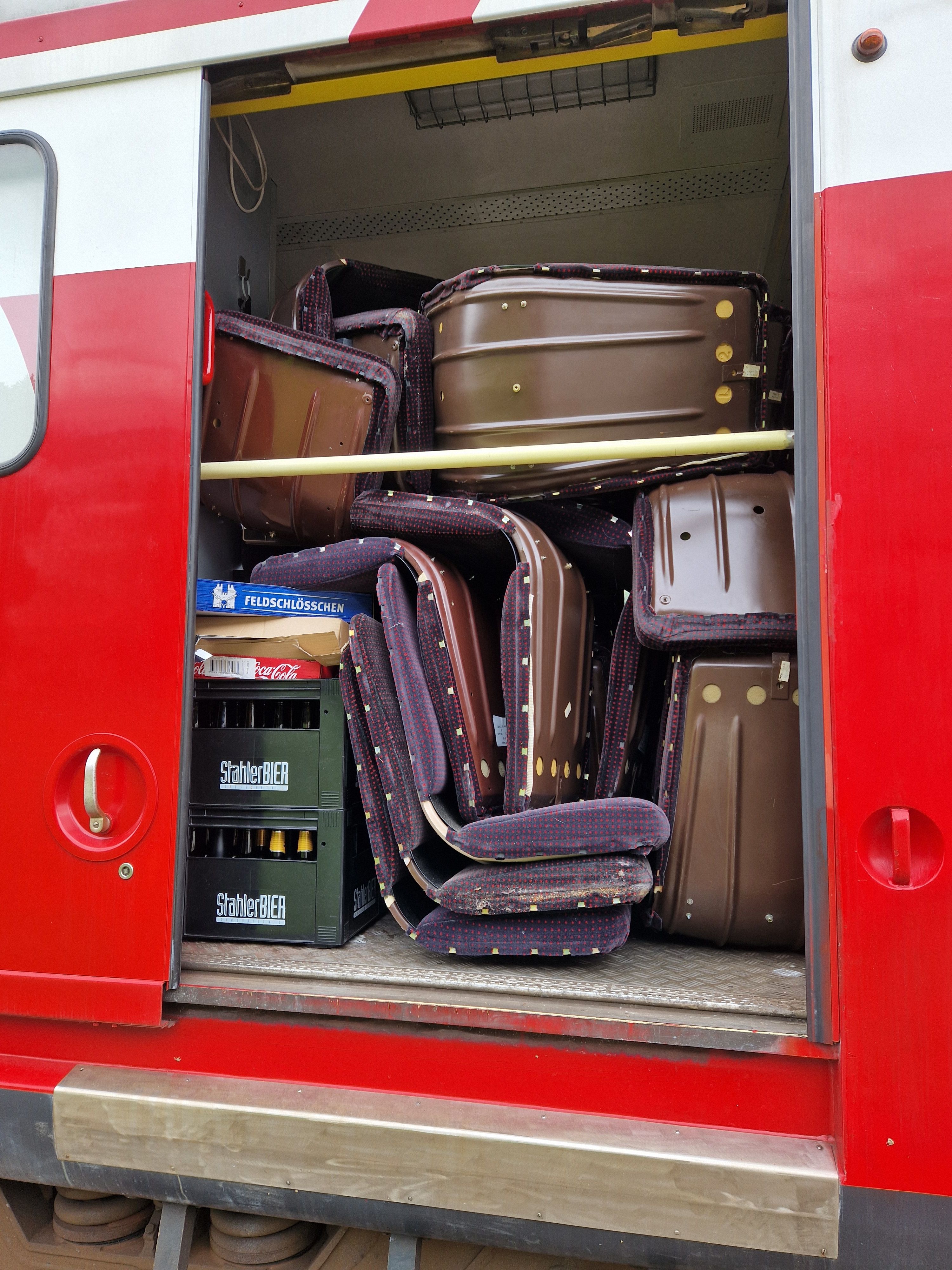 Das Resultat des Zwischenlagers: Im Gepäckabteil des RBDe 222 war kaum mehr durchzukommen...