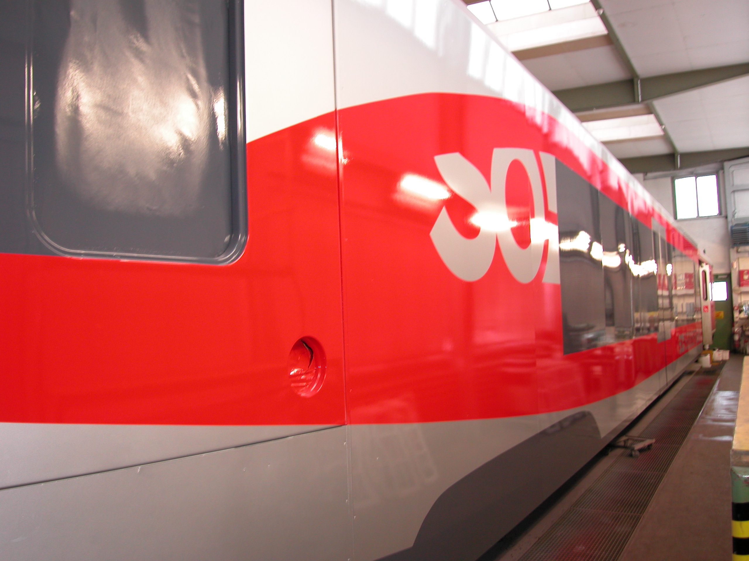 Die Flirt-Maquette der SOB. am rechten Bildrand ist die Türe des Trägers ABt 901 zu erkennen.