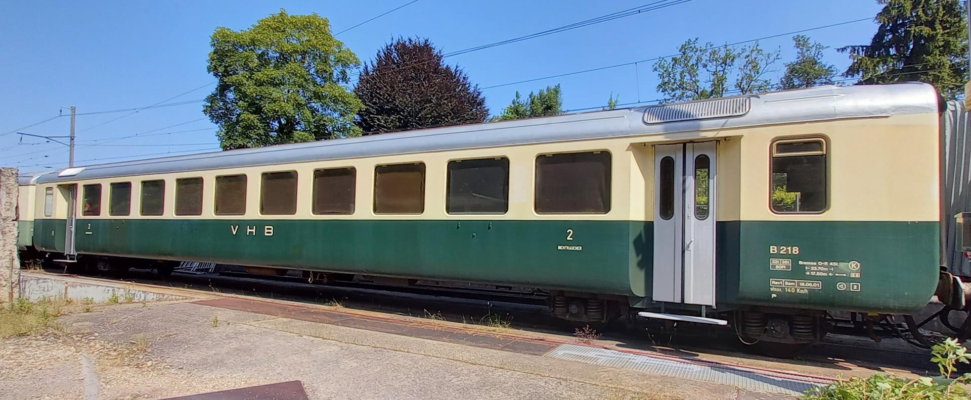 Unsere "Lastesel" sind die beiden Zweitklassewagen B 218 und 227, von aussen nur in wenigen Details zu unterscheiden, innerlich jedoch grundverschieden. Dies hat historische Gründe: Während der B218 als Ursprungsfahrzeug bei den SOB in Dienst gestellt wurde und aufgrund seines Alters eine Hauptrevision mehr erhiehlt als der deutlich jüngere B227 weicht auch seine Inneneinrichtung stark ab. Der B218 besitzt eine Einrichtung mit moderneren Längsgepäckträgern, was ihm einen grossen Raum verleiht. Ebenfalls ist in Details der Inneneinrichtung sein Ursprung der damals gelieferten Wagenserie an die BLS zu erkennen, welcher der Wagen angeschlossen wurde (durch gleichzeitige und gleiche Produktion konnten Kosten gespart werden).