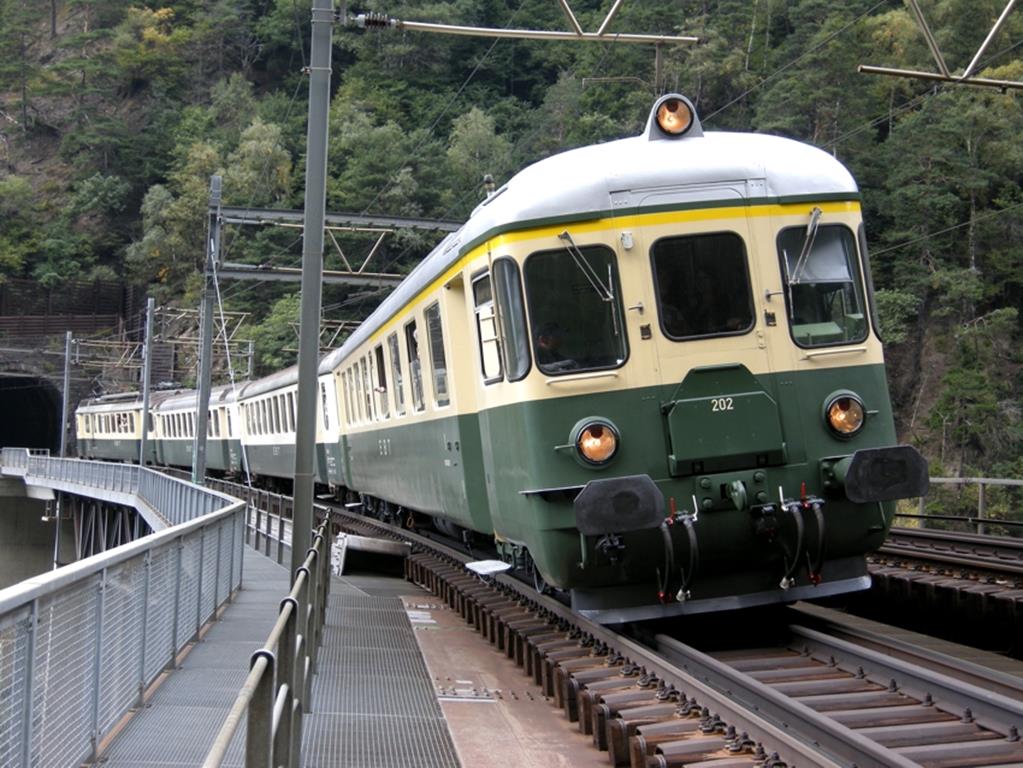 Der ABt 202 in seinem Design bei der Südostbahn. Es war nicht selten, dass dieser Zug im Voralpenexpress eingesetzt wurde.
