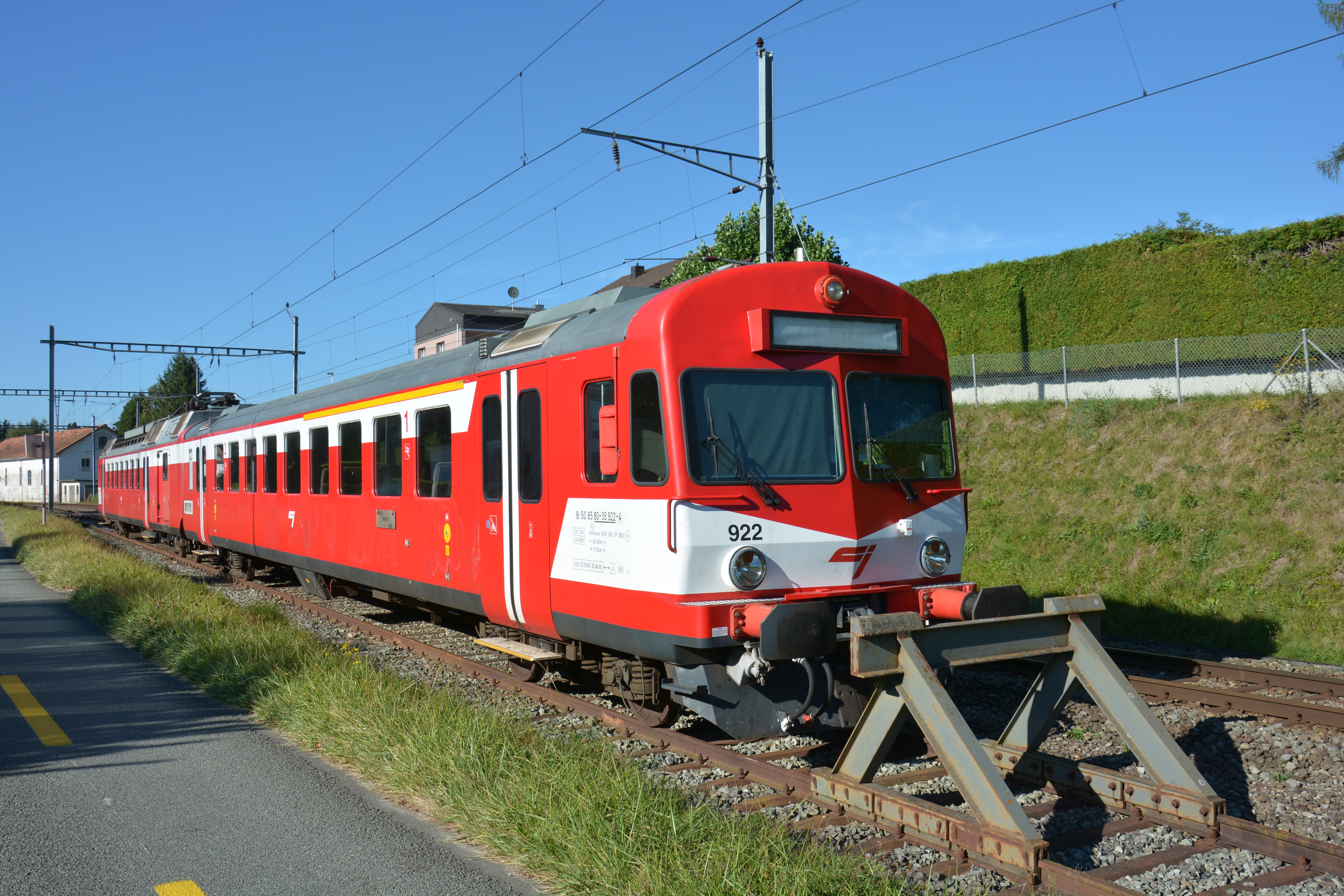 Das Design mit den Zierlinien auf der Front wurde auch auf den Nachfolger- Zügen des Typs RBDe 4/4 II angewendet, wobei hier auf der Seite die "Erbse im Topf" mit den Bahninitialen angebracht wurde.