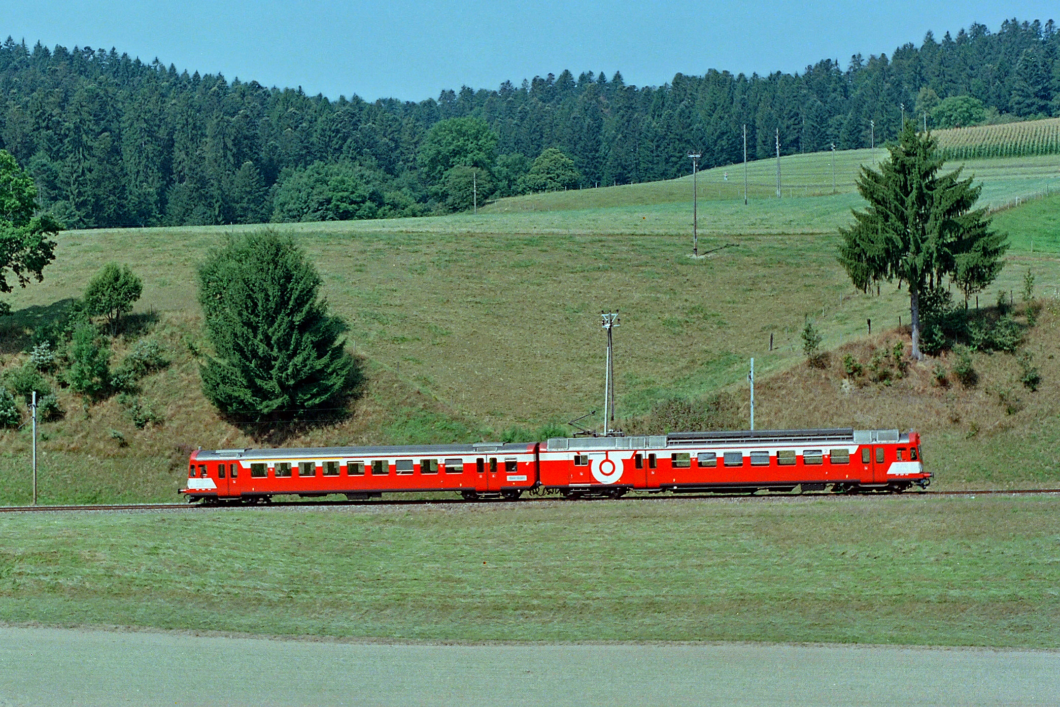 Mit der Inbetriebnahme der Pendelzüge des Typs RBDe 4/4 I tauchten erstmals rote Züge auf den Linien der EBT-Gruppe auf. Die neue Farbe half natürlich, den damals modernen Komfort des neuen Rollmaterials zu unterstreichen.